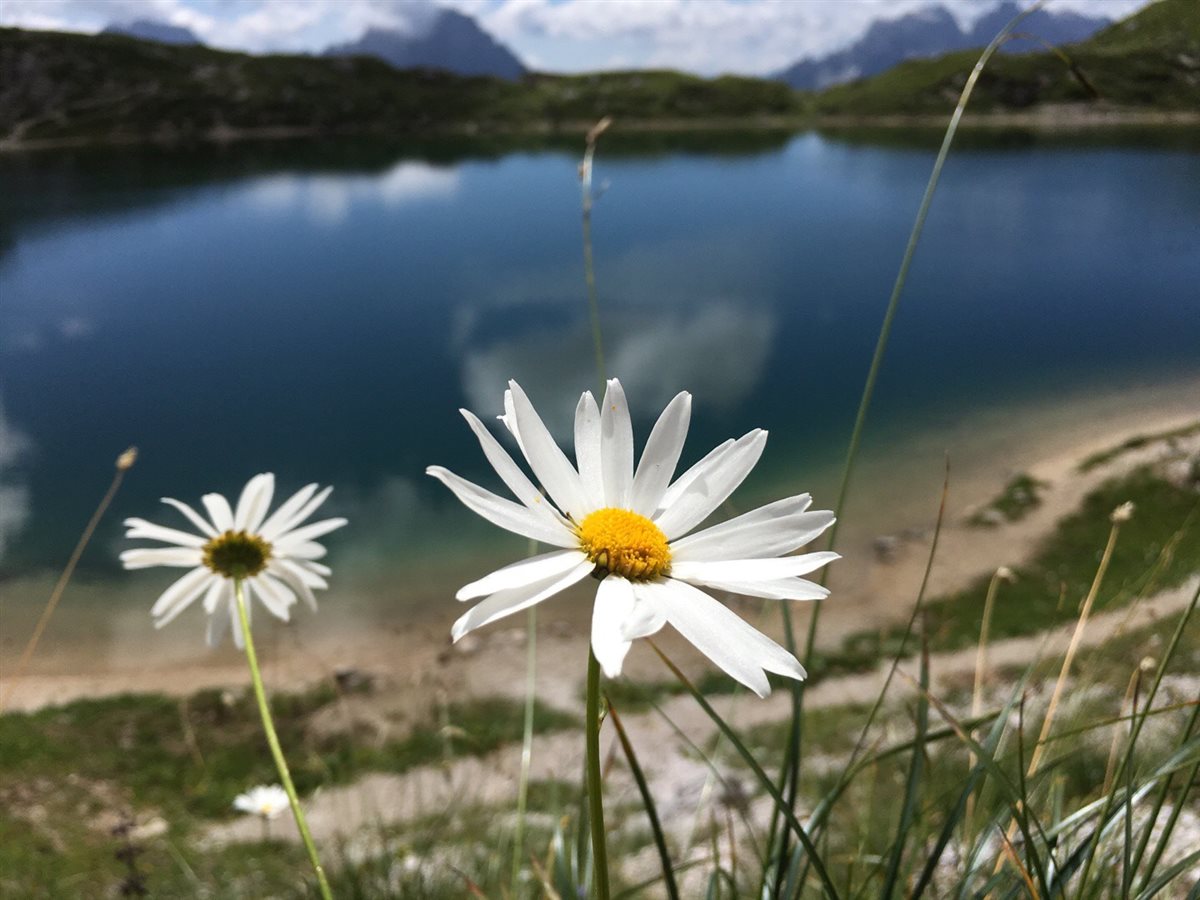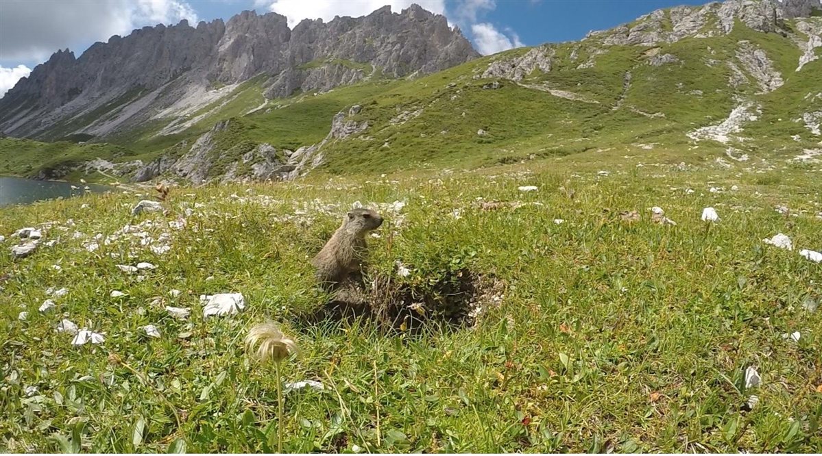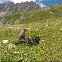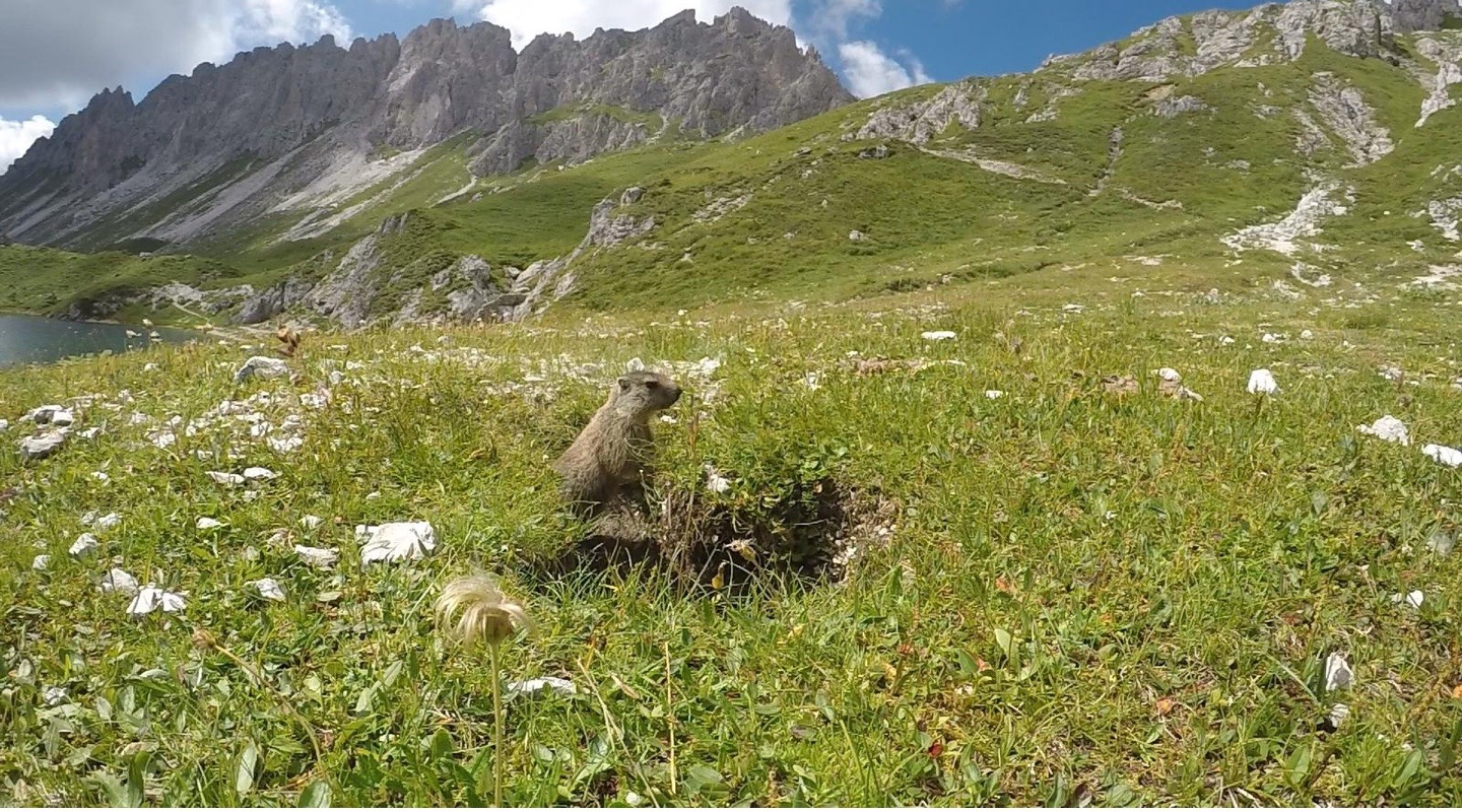 Sui prati intorno alle sponde la natura la fa da padrona! Le marmotte corrono veloci, e noi con un po’ di pazienza riusciamo perfino a fotografarle mentre escono dalle loro tane! Siamo presto circondati anche da un simpatico gruppo di mucche al pascolo che decidono di passeggiare con noi per un po’.