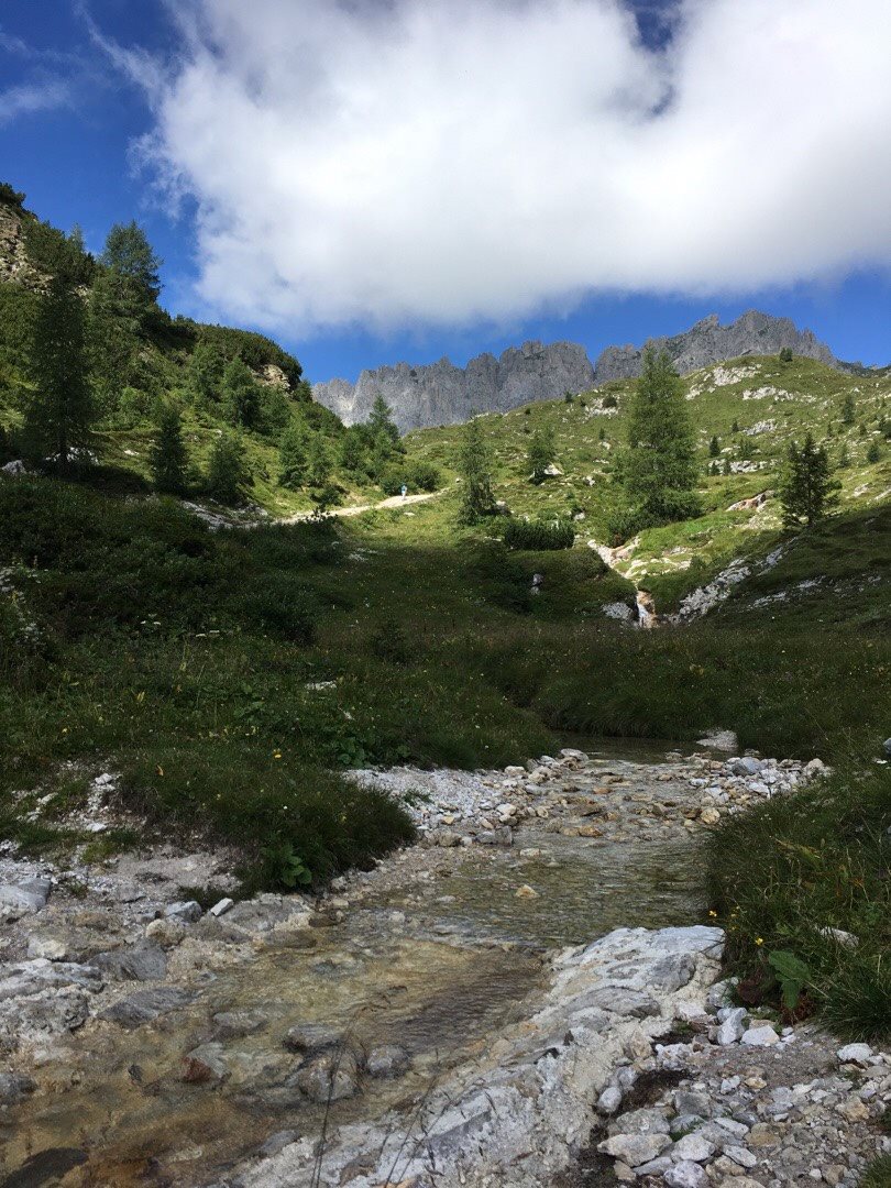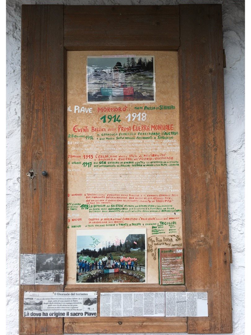 Prima di proseguire ci rinfreschiamo i piedi nelle acque limpide del torrente che scorre alle nostre spalle...o meglio...in quello che sembra un semplice torrente, ma che in realtà altro non è che il primo tratto del Fiume Piave! Già, perché il Piave nasce proprio qui, ed è alla sua sorgente che stiamo andando! Vi consiglio di non perdere l'occasione di vedere con i vostri stessi occhi dove sgorga uno dei Fiumi Sacri alla Patria, e se sarete troppo stanchi per camminare ancora, la buona notizia è che la sorgente è raggiungibile anche in auto e si trova davanti al Rifugio Sorgenti del Piave, ai piedi del Monte Peralba a 2037mt. In questo rifugio troverete ristoro, ripercorrerete le tappe della Prima Guerra Mondiale splendidamente esposte, vi immergerete per qualche istante in un momento storico di incredibile importanza e sarete per sempre testimoni della nascita silenziosa di questo fiume.