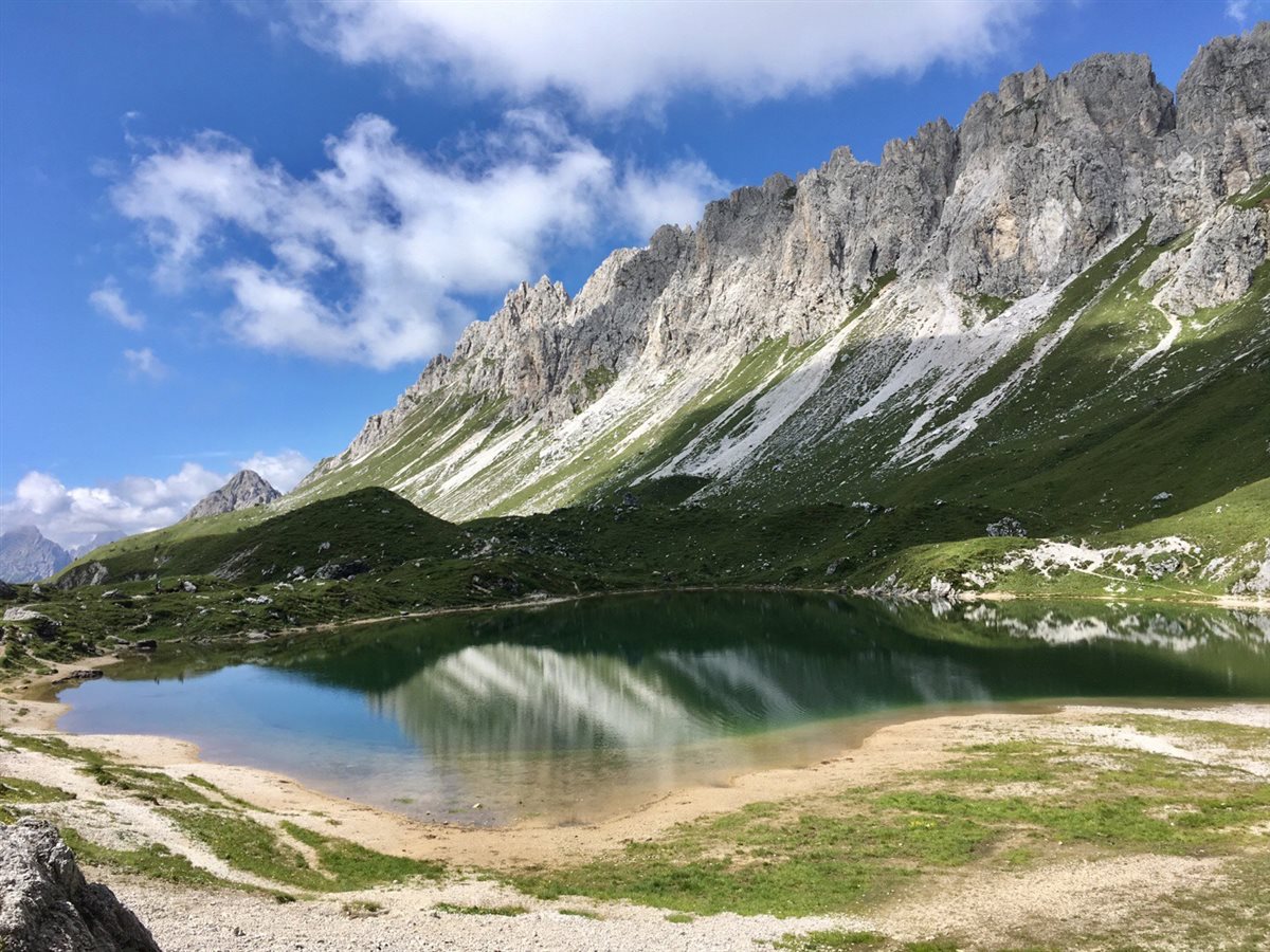 Inutile dire quanto sia appagante il panorama lungo le 2.30h di cammino: alla vista si aprono immense vallate e le Dolomiti in tutto il loro fiero splendore, per non parlare, una volta raggiunta la quota di 2156mt, dei colori del Lago stesso!