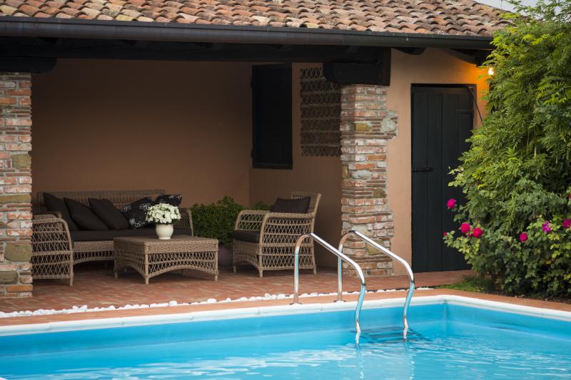 Spesse mura, pavimenti in cotto antico, travi a vista, arredi e tendaggi legati alle tradizioni creano un'atmosfera senza tempo. La cura dei dettagli, la fornita libreria dedicata al territorio, la sala colazioni, suddivisa tra interno ed esterno per cogliere al meglio le opportunità stagionali, fanno convivere comodità ed essenzialità. Giardini ben curati con fioriture stagionali contornano la piscina e i salottini per il relax.