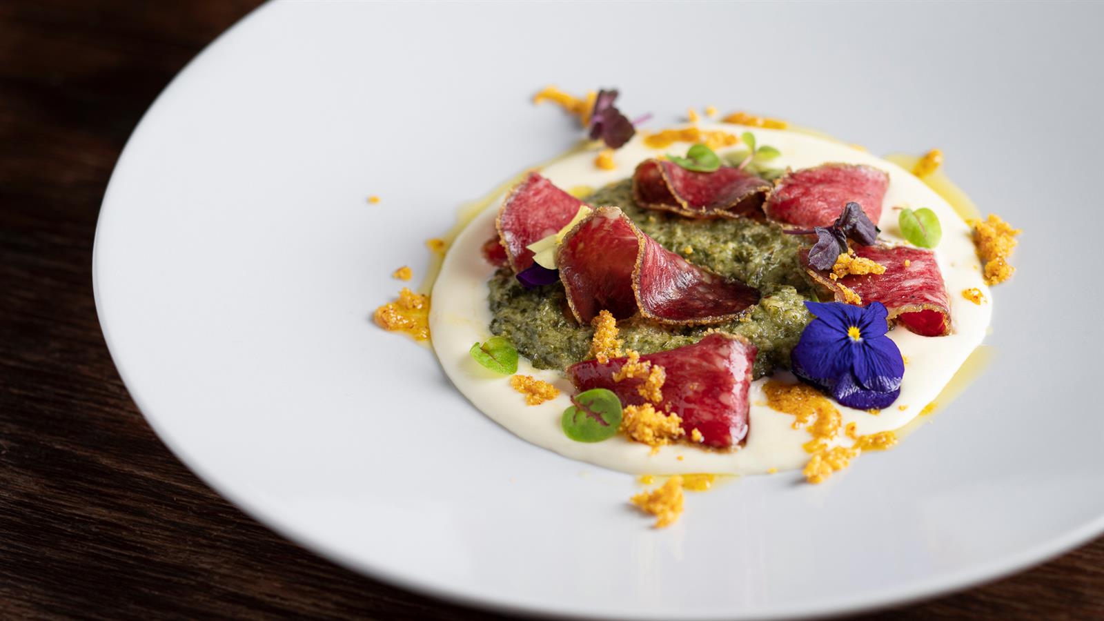 Componete il piatto ponendo alla base il toc in braide, a seguire il pistum con il brodo di polenta sopra. Potete guarnire a piacere, l’Antica Corte di Tramonti di Sotto suggerisce alcune fettine di pitina, affettate sottilmente e adagiarle in cima al piatto insieme alla farina tostata per concludere.