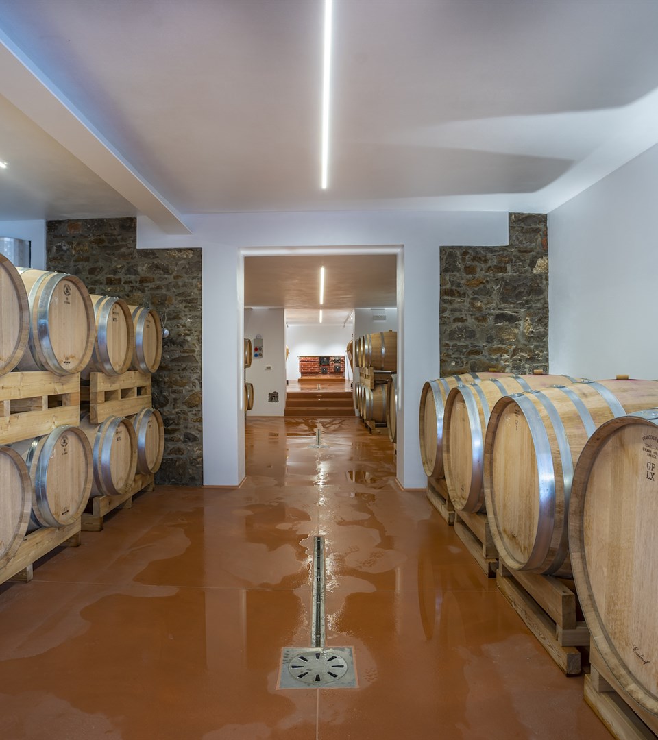L’affinamento dei vini avviene in tradizionali vasche di cemento, anfore di  cocciopesto e pregiate botti di legno di rovere francese.