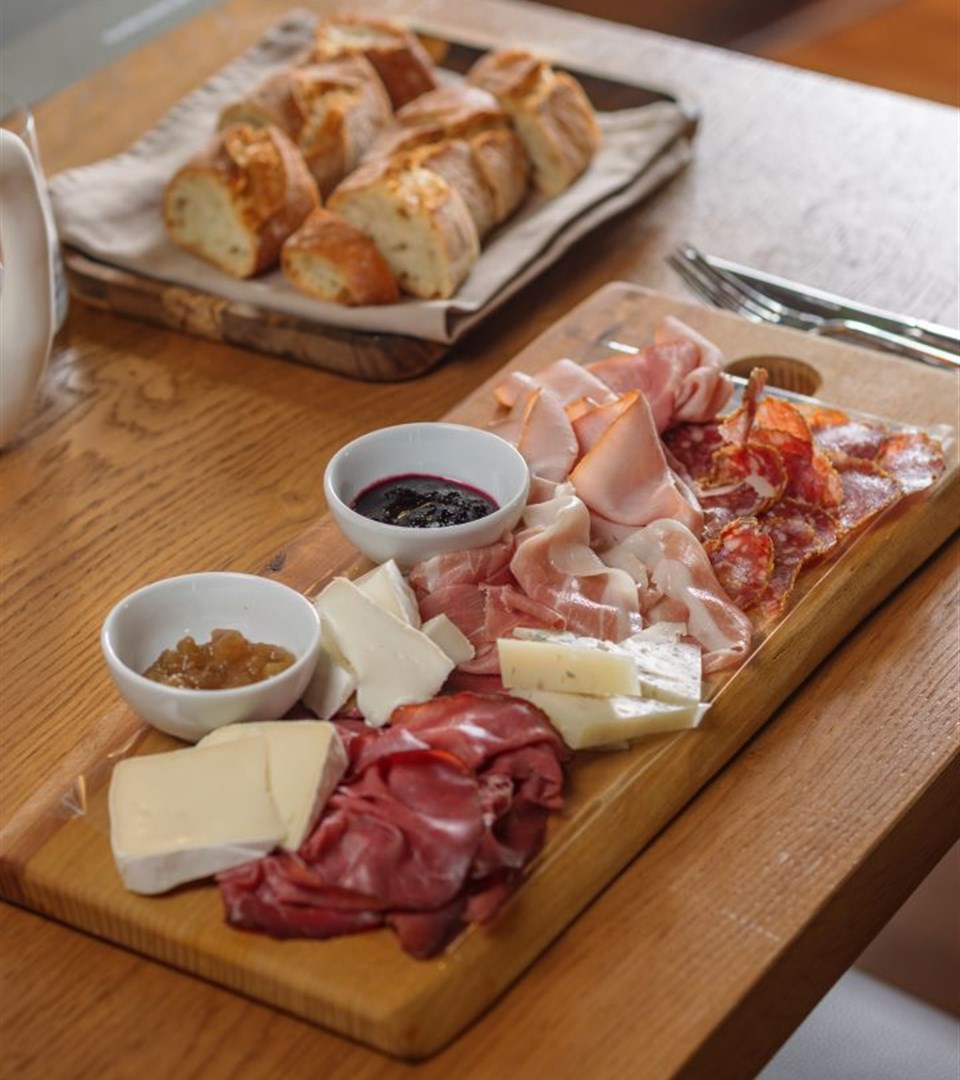 La cucina è tradizionale, moderna e stagionale, e si basa sull'utilizzo di prodotti tipici e locali. é il locale per tutto il giorno: viene servita una vasta gamma di piatti, dalle colazioni ai pranzi e alle cene: a pranzo più semplici e leggeri, mentre la cena è più strutturata e raffinata, con piatti più elaborati e presentati con cura.