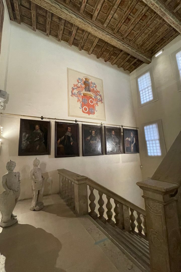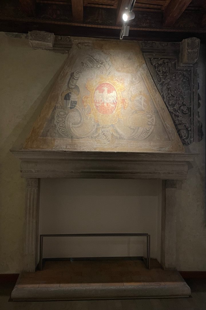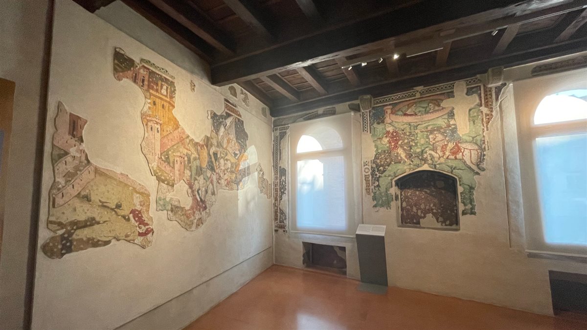 Più che un edificio che “ospita” le opere d’arte, possiamo senza ombra di dubbio considerare lui stesso uno chef d'œuvre! Sia al primo che al secondo piano sono visibili dei lacerti di opere ad affresco: scene di caccia ed allegoriche, ispirate all’epica carolingia e alle storie di Tristano e Isotta per non parlare dello scalone d’onore che ci conduce al primo piano e ci fa sentire dei conti e delle contesse!