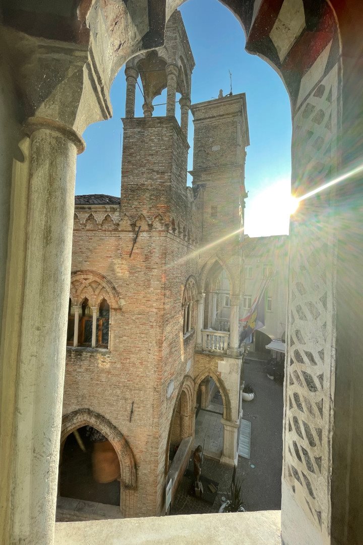 È proprio una piccola monofora del secondo piano, che nel tardo pomeriggio ci offre la vista più bella sul palazzo del municipio e facendoci segretamente innamorare, ci chiede di tornare a rendere visita alla città un’altra volta ancora.