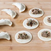 Mettete al centro di ciascun disco un cucchiaino di ripieno, richiudete a mezzaluna facendo uscire l’aria e sigillate bene i bordi. Capovolgete ogni cjarsons e schiacciatelo leggermente al centro con il dito indice, per dargli la forma tipica. Disponeteli su un vassoio infarinato fino al momento della cottura.