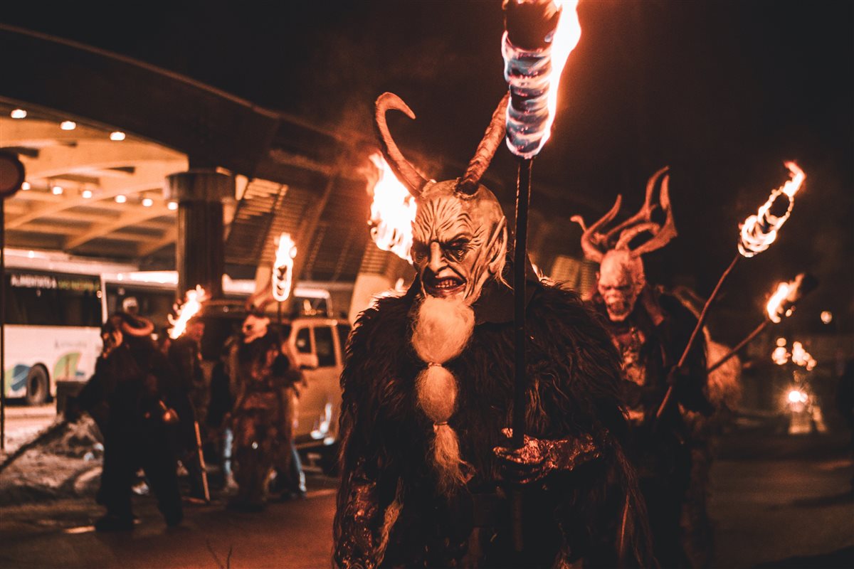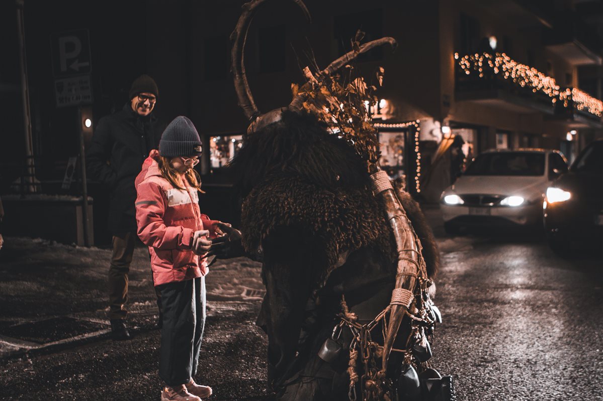 Ma il vero clou sono proprio i Krampus, che assieme a San Nicolò, si palesano ogni anno durante l'Avvento. Queste creature mitiche hanno affascinato e sorpreso la folla, portando con sé una parte delle ricche leggende e tradizioni locali. I Krampus, infatti, traggono le loro origini dal precristianesimo, quando giovani coraggiosi si camuffavano con pellicce di piume, pelli e corna di animali per sottrarre riserve vitali ai villaggi vicini. Un demone diabolico, però, riconoscibile per le zampe a forma di zoccolo di capra, si infiltrò tra loro e soltanto il vescovo di Myra riuscì a sconfiggerlo.