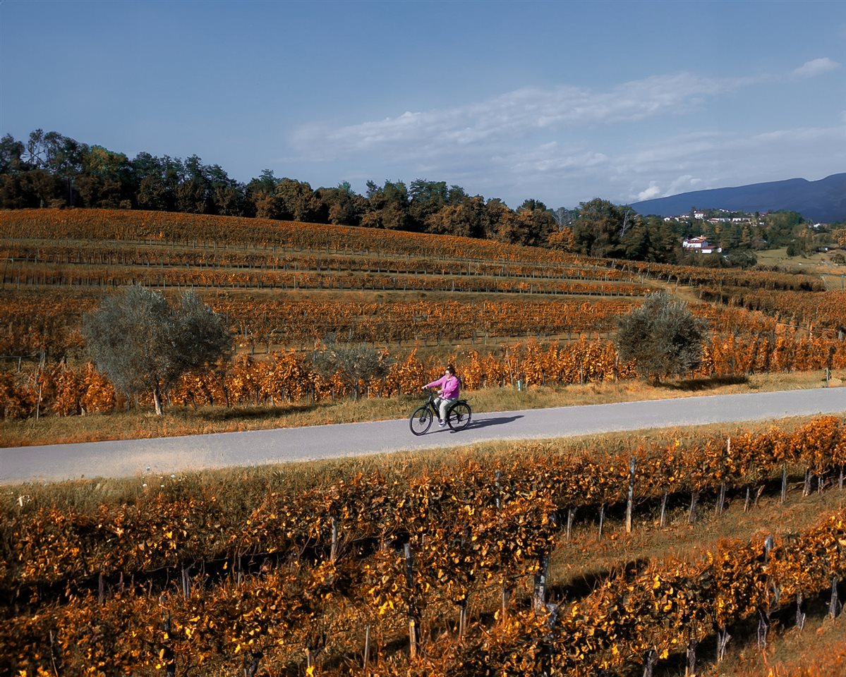 Pedalando, avrai l'opportunità di esplorare il confine tra Italia e Slovenia. Il Collio, infatti, è una regione geografica da 150kmq divisa tra Collio italiano e Brda (traduzione slovena della parola colline). Questo affascinante territorio, naturalmente omogeneo, con tradizioni e costumi simili, è stato diviso solo politicamente a seguito della Seconda Guerra Mondiale ma è testimone di una collaborazione secolare tra uomo e natura. Le vigne, che decorano il paesaggio fino all'orizzonte, rappresentano il duro lavoro e la passione per il vino tramandata di generazione in generazione.