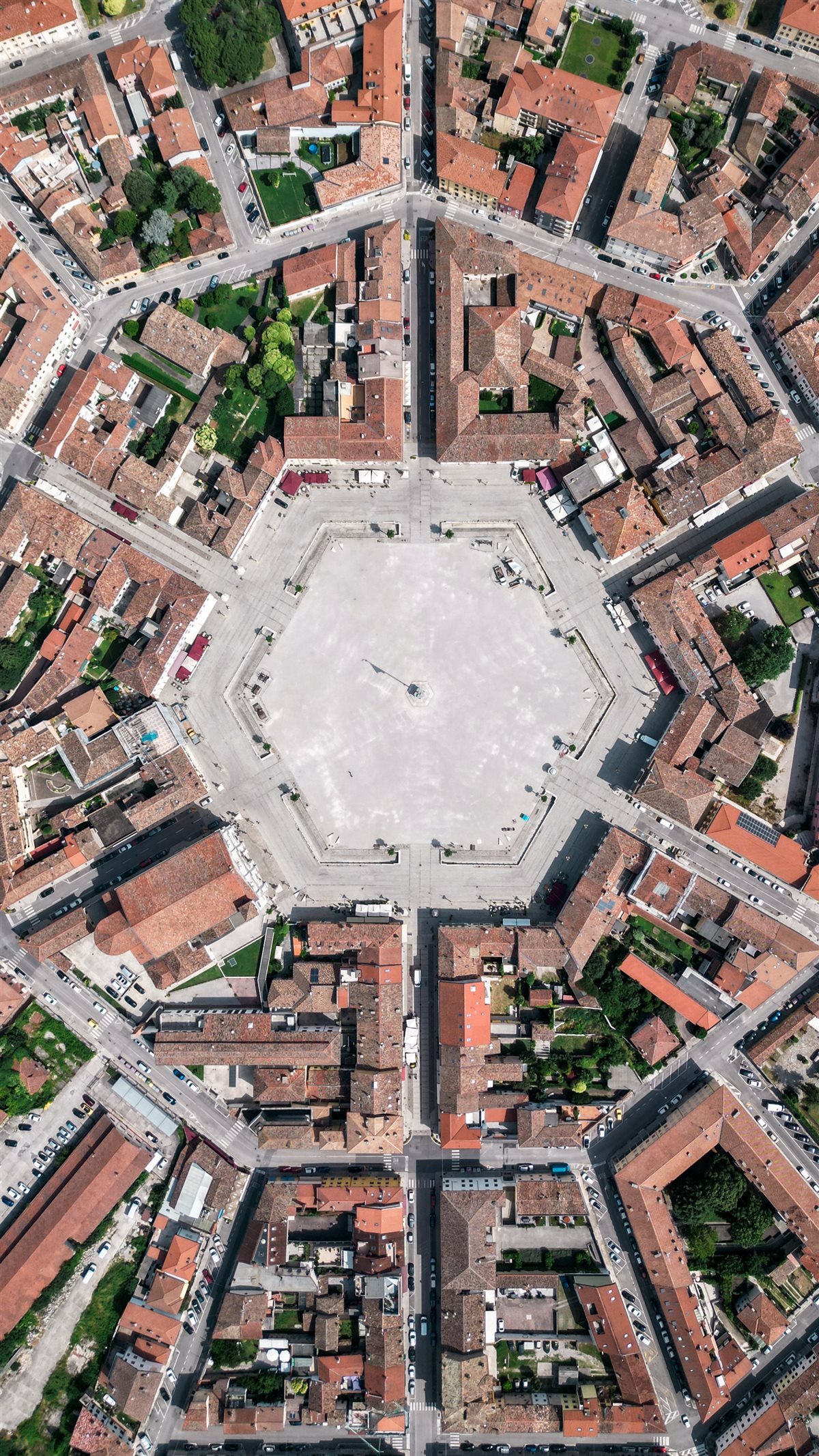Palmanova: proseguiamo nella geometria perfetta di Palmanova, una città a forma di stella a nove punte progettata come fortezza. Proclamata Monumento Nazionale e Patrimonio Mondiale dell'Umanità UNESCO, questa straordinaria città fu edificata dalla Repubblica di Venezia per difendersi dagli Asburgo e dai Turchi. Oltre a essere un capolavoro di architettura militare, è una testimonianza vivente dell'ingegno umano nel campo dell'urbanistica.