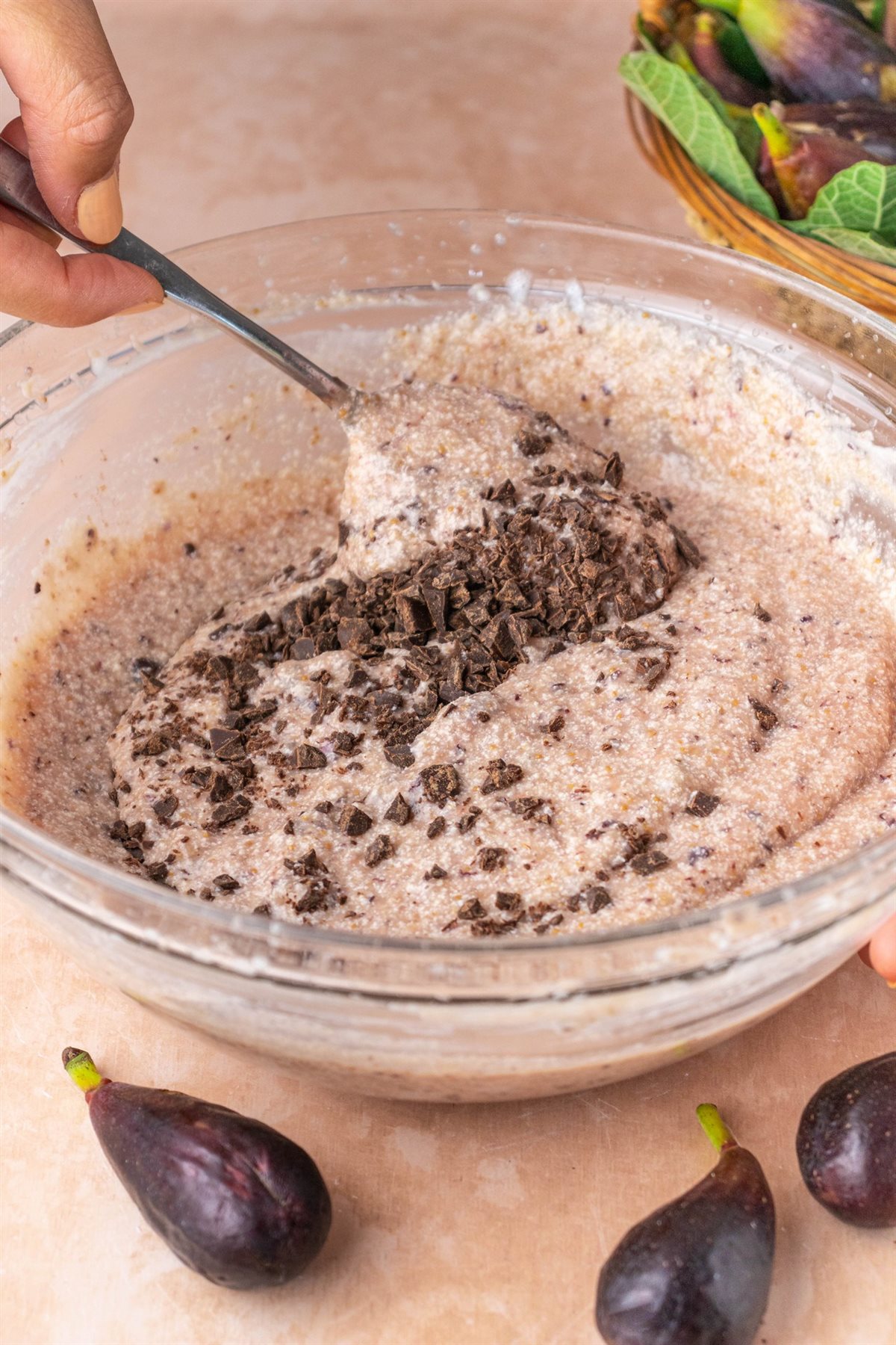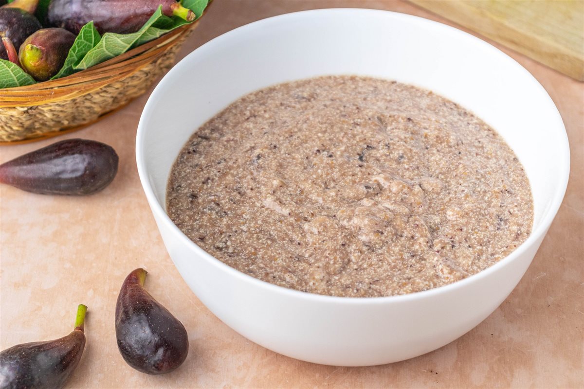 Lavare i fichi, tagliarli e frullarli con un frullatore a immersione fino renderli una purea.