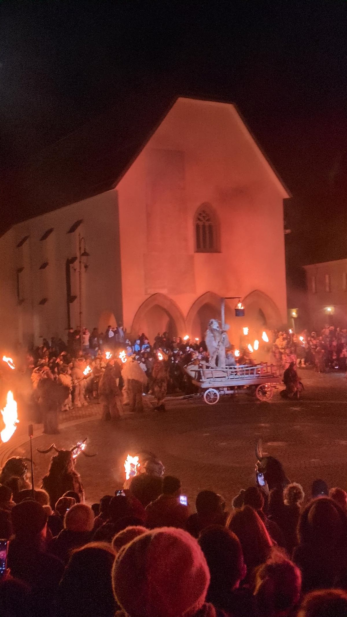 La sera del 5 dicembre, l'atmosfera a Tarvisio si carica di tensione ed emozione. I Krampus emergono misteriosamente dalla foresta, accompagnati dal suono dei campanacci e dal bagliore delle torce. San Nicolò, con la sua lunga barba bianca, fa il suo ingresso su una slitta o un carro, portando ordine e armonia, anche se solo temporaneamente.