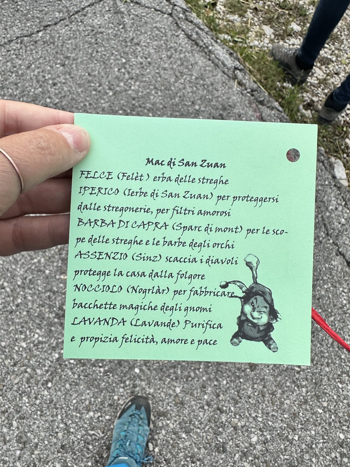 Maç di San Zuan Il 23 giugno, raccogli un insieme di erbe benefiche come ruta, artemisia, lavanda, salvia, felce, menta e soprattutto iperico. L'iperico è infatti conosciuto anche come erba di San Giovanni e viene utilizzato per scacciare gli spiriti maligni e proteggere la casa. Le altre erbe invece variano a seconda del territorio. Queste erbe, appese vicino all’uscio di casa, offrono protezione per l’anno a venire. Il mazzetto dell'anno precedente viene bruciato nel falò di San Giovanni.