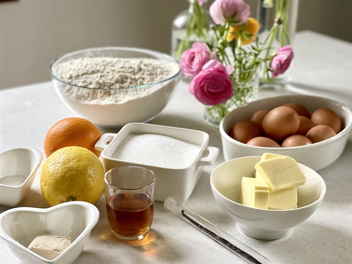- Nella planetaria unire 50 g di zucchero, i tuorli, le uova intere, le scorze degli agrumi, la vaniglia, 35 g di burro sciolto, il Marsala e 300 g di farina.