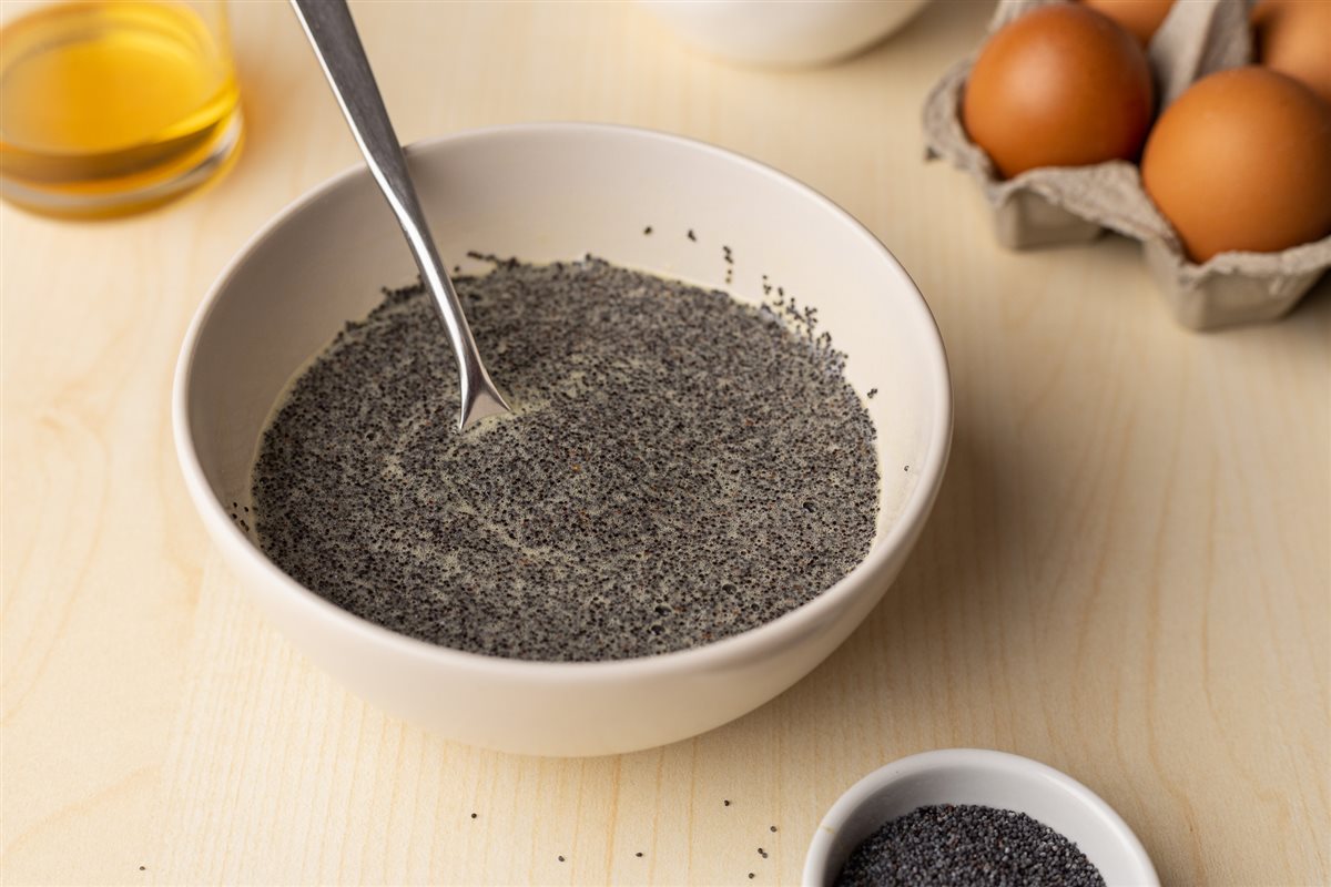 Per il ripieno sbattere l'uovo, mescolarlo con i semi di papavero, lo zucchero a velo e il rum e tenere da parte.