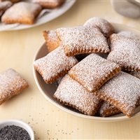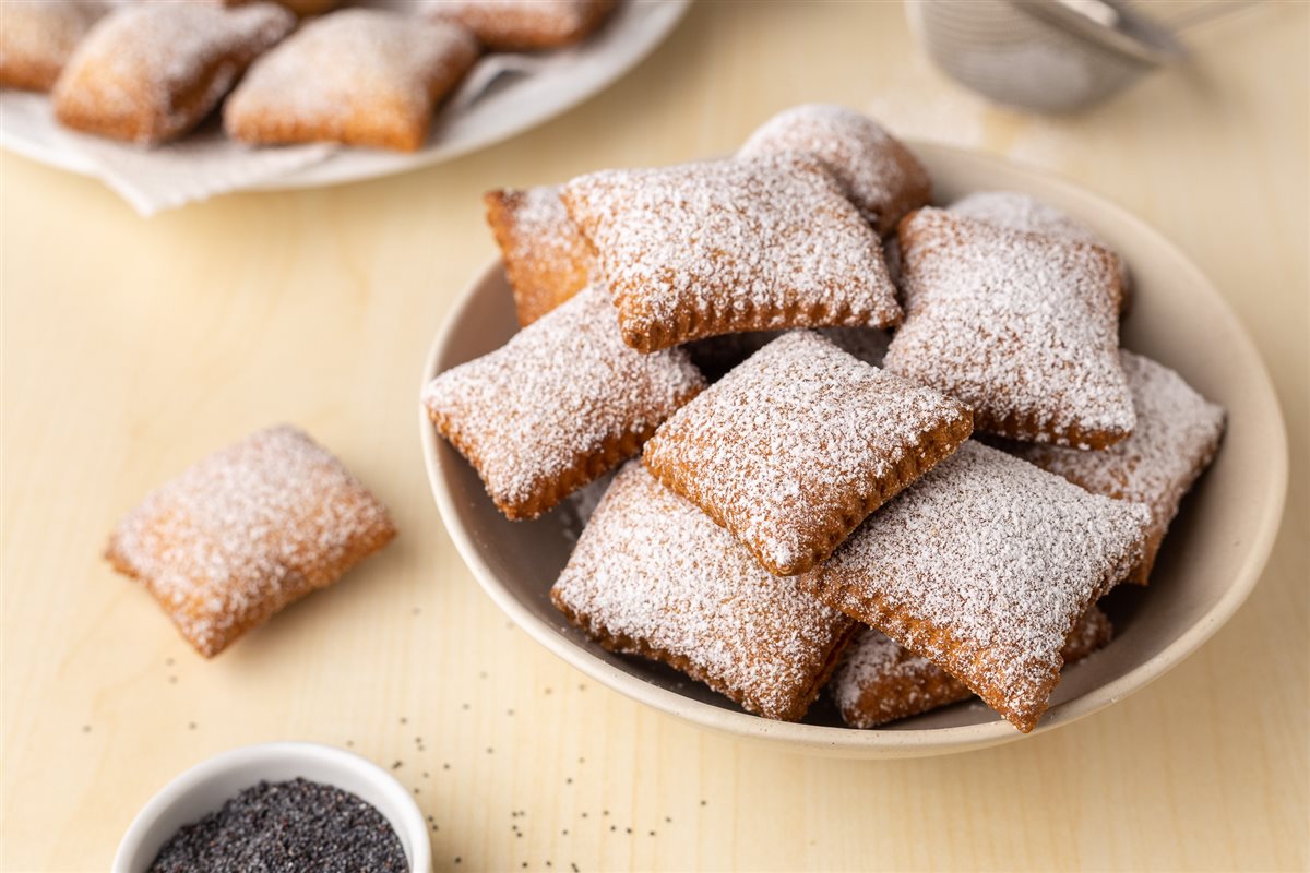 Sono un piatto tipico della tradizione di Sappada in cui un impasto molto semplice a base di farina, uova, zucchero e panna racchiude un cuore di semi di papavero.