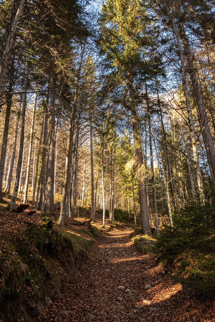 Il punto di partenza è Ugovizza, dove si trova un comodo parcheggio (il costo del pedaggio è di 5 euro). Da qui, si imbocca un breve sentiero che si congiunge alla carrareccia principale, che conduce fino alla malga. L’intero percorso si sviluppa nel sottobosco, regalando un’atmosfera tranquilla e rigenerante.
