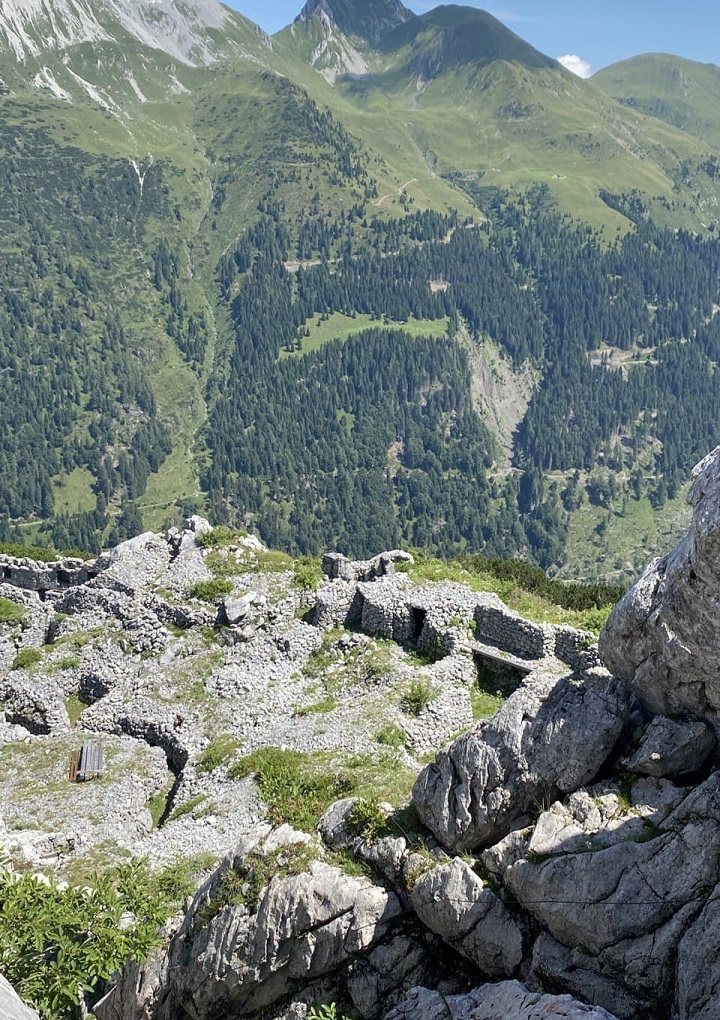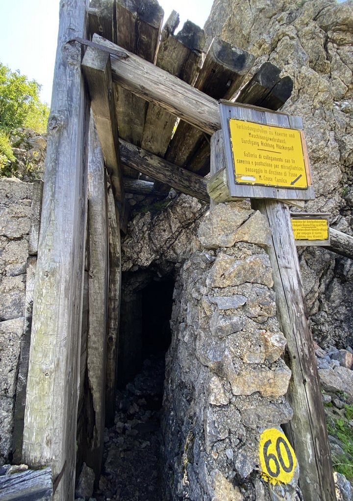 Gli ultimi metri portano ancora i segni dei bombardamenti, con profondi avvallamenti del terreno. Arrivati in cima si può accedere a uno dei siti del Museo all’aperto. Apparentemente la zona delle trincee sembra difficile da raggiungere. L’opzione più evidente è una ripida scala, utilizzata durante il conflitto (oggi per accedervi è consigliato avere i moschettoni da arrampicata). Meglio, dunque, decidere di fare il giro del costone montano e salire da una scala di legno più accessibile.