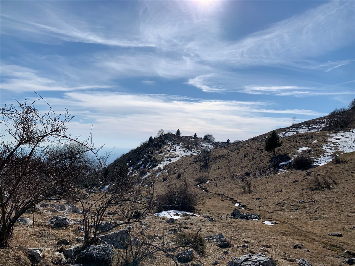 Più in alto ci attende quello che fu un pascolo. Anni addietro era quasi un giardino: ora la zona si è arricchita di numerosi noccioli che ombreggiano il percorso e rendono ancor più suggestive le vedute sulla pianura ed i suoi corsi d'acqua. In lontananza si ammirano il Cellina, il Meduna ed il Tagliamento. Sullo sfondo i bagliori del mare.
