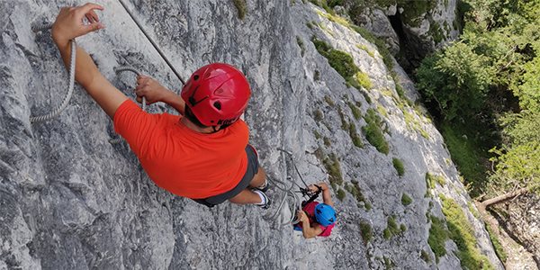 La montagna offre la possibilità di essere vissuta da ognuno secondo i propri passi. Le vie ferrate sono l’anello di congiunzione tra i passi dello scalatore e quelli dell’escursionista. La ricerca di una dimensione verticale, del contatto diretto con la roccia e il desiderio di osservare il panorama da una diversa prospettiva. Grazie all’attrezzatura fissa apposta sulle vie e i tanti tracciati che offrono queste vette, puoi scoprire e calibrare nuovi passi, sperimentare nuovi approcci, arricchire te stesso e il tuo prezioso rapporto con la natura.