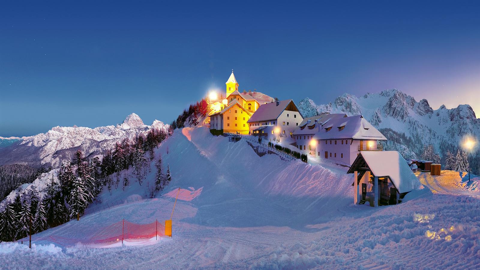 Un luogo magico, con un borgo incantato e un santuario raggiunto da pellegrini italiani, slavi e tedeschi. È il suggestivo Monte Lussari, a poca distanza da Tarvisio. Da quassù parte la Pista Di Prampero, una delle discese più emozionanti della regione.
